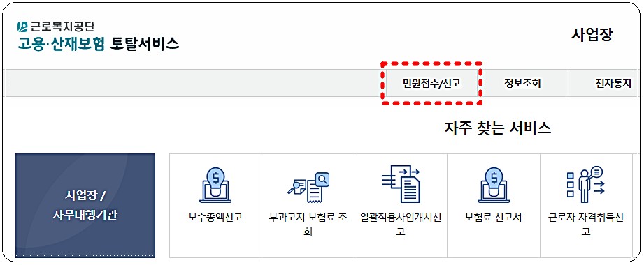 - 정보조회 > 민원조회 > 사업장 피보험자격신고현황: 해당 메뉴에서 상실신고 처리 여부 확인