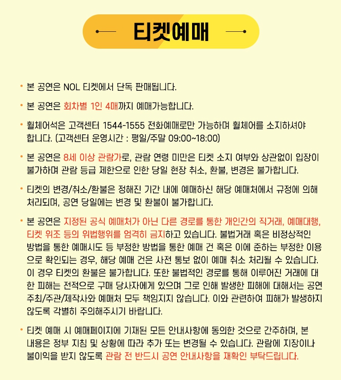 - 예매처(NOL 티켓) 기준 예매 가능 시간: 관람 3시간 전까지