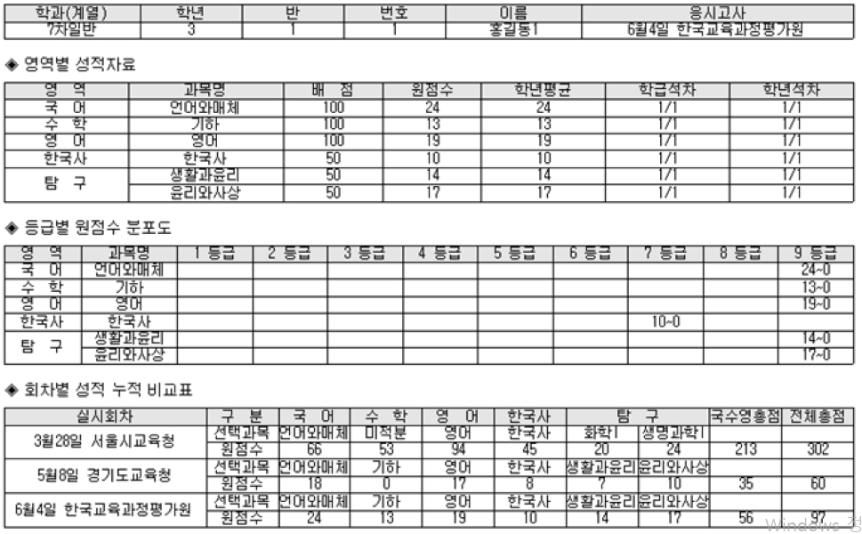 - 백분위/표점 반영 전에 스스로 계산한 값