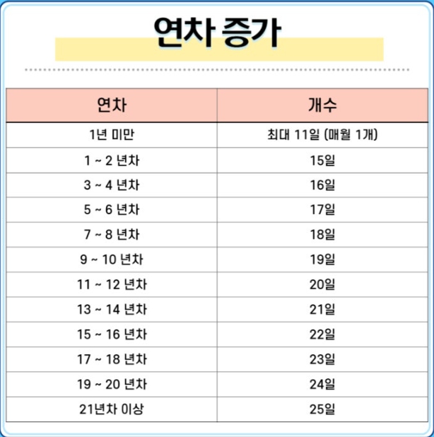 - 3년 근속: 15일