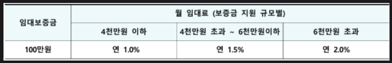 - 전세지원금 중 보증금 제외액에 대해 연 1~2% 이자 적용
