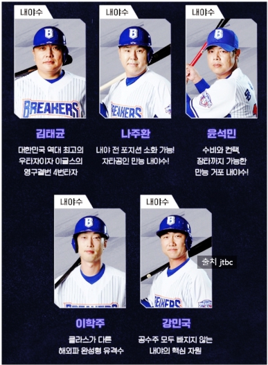 - 내야수: 김태균, 나주환, 윤석민, 이학주, 강민국