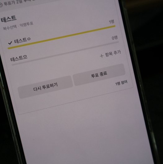- 투표 하단에는 실시간 참여자 수와 결과가 표시되어 진행 상황도 쉽게 확인할 수 있어요.