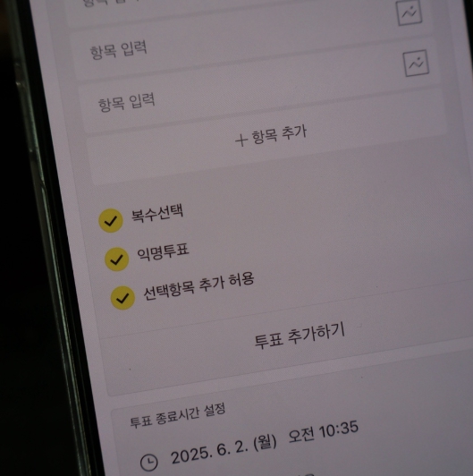 ✔️ 익명, 복수 선택, 마감 시간까지 설정 가능