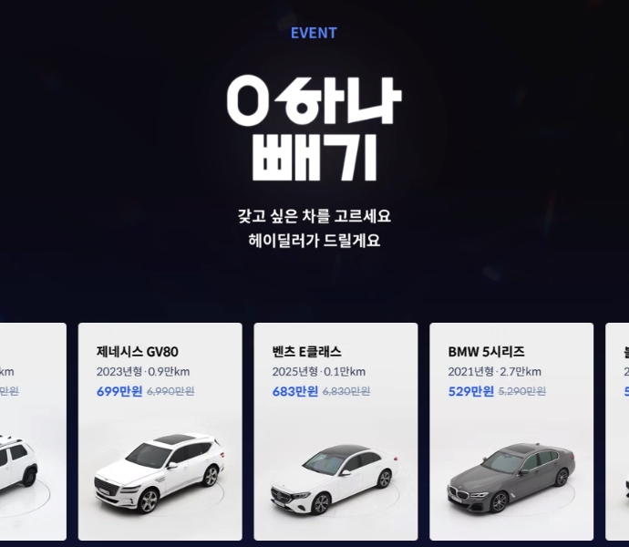 드림카를 **‘0 하나 뺀 가격’**에 살 수 있다면 믿으시겠어요? 바로 지금, 헤이딜러 0하나 빼기 이벤트