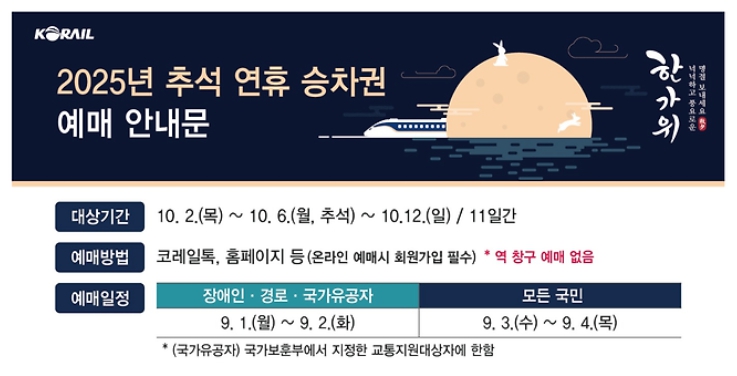 👉 본 글은 코레일의 2025 추석 승차권 예매 안내를 기반으로 작성되었으며,