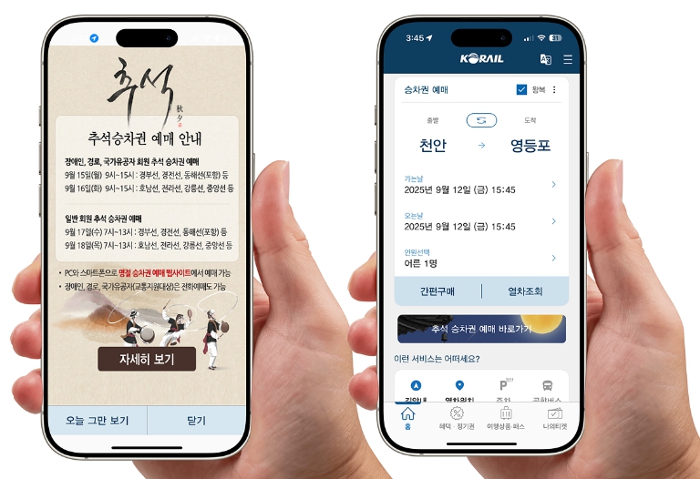 - 2025 추석 코레일 열차표 잔여석 판매 일정