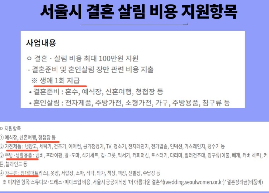 서울시는 결혼을 준비하는 예비부부와 신혼부부의 경제적 부담을 덜기 위해 **‘신혼부부 결혼·살림비용 지원사업’**을 시행하고 있습니다.