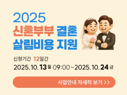 혼인신고일이 2025년 7월 14일 이후라면, 꼭 신청기간 내에 접수해 지원 혜택을 받아보세요.