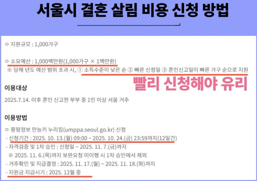 서울시 신혼부부 지원금 신청 안내! 결혼·살림비용 최대 100만 원 지원, 신청기간, 조건, 제출서류,