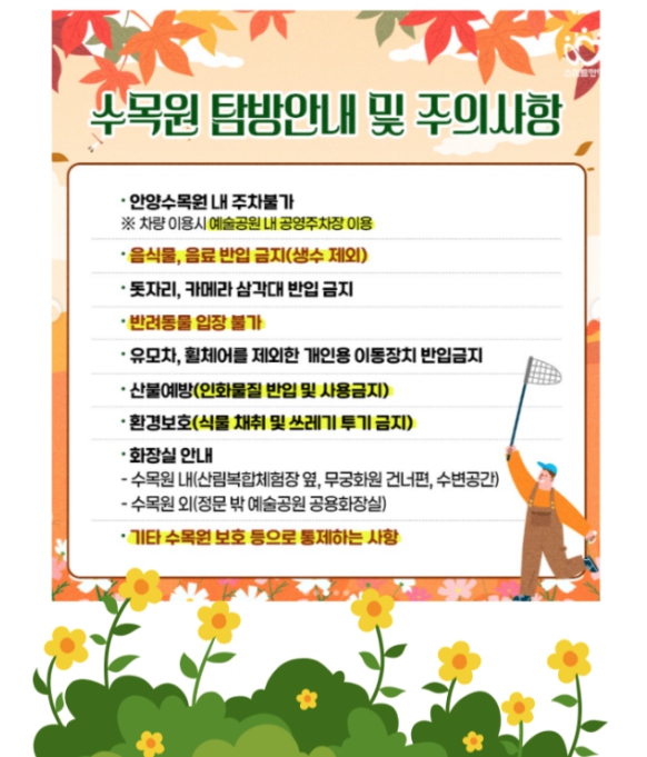 - 이름이 ‘관악수목원’에서 ‘안양수목원’으로 변경되었으며, 약 1 158종의 식물이 서식하는 생태적 가치가 높은 공간입니다.