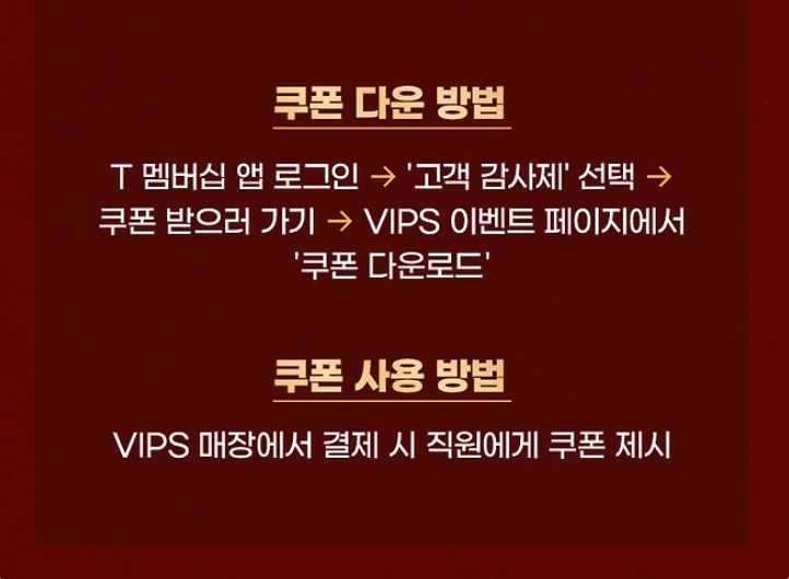 - ‘VIPS 50% 쿠폰’ 다운로드 → 쿠폰함 저장