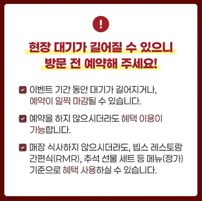 - 적용 범위: 샐러드바·스테이크 등 전 메뉴 + 추석 선물세트·RMR까지(매장별 상이 가능)